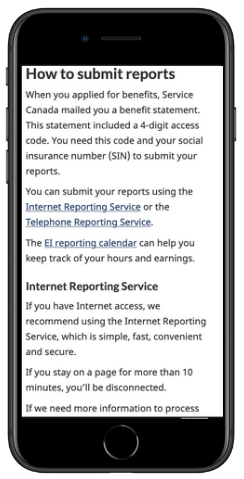 A common complaint was that the reporting link was hard to find on the Employment Insurance reporting page.